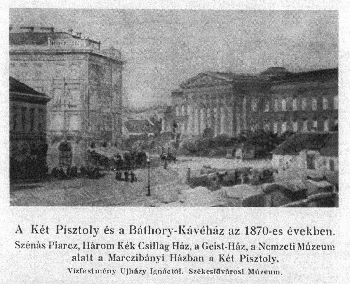 A mai Kálvin téren volt a gyülekező, amelyet akkor Szénás térnek neveztek. Ennek keleti sarkán, a Magyar Nemzeti Múzeummal a háta mögött állt a Wimmer Kávéház, a mai Kálvin Square sokemeletes üvegépülete helyén. A kis földszintes házikó a városba érkezők megálló- és pihenőhelye, illetve a kispénzű egyetemi ifjúság ivójának számított a korban. Úgynevezett kofakávéház volt, akkoriban a Két Pisztoly Vendégfogadó nevet viselte (bár eredetileg Marczibányi Háznak s nevezték), és a Szénás térre érkező vidéki árusok látogatták, meglehetősen rossz hírnek örvendett.