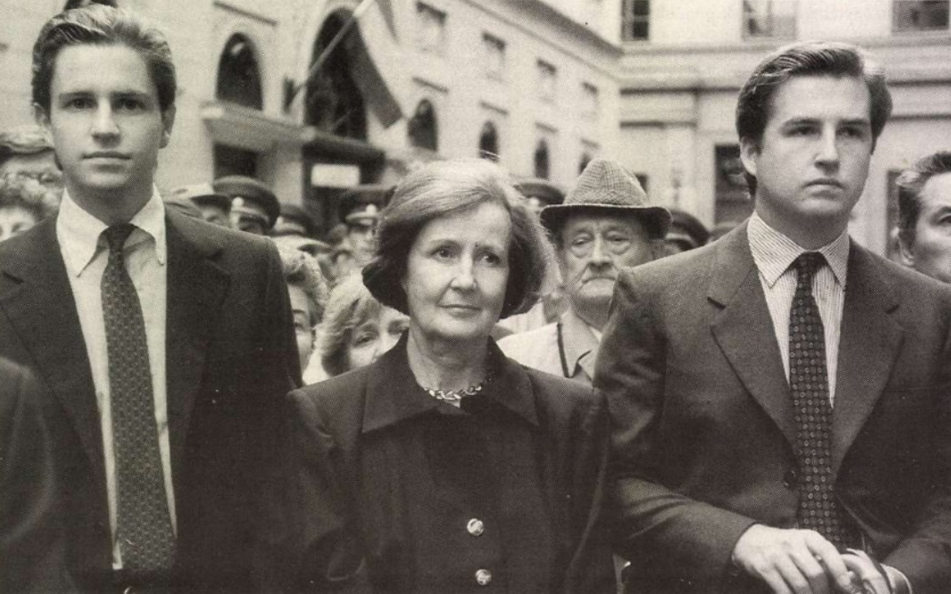 János Esterházy's daughter, Aliz with her two sons at the unveiling of the memorial plaque at Szép street in 1992 (Source: Magyarország, 10 December 1993)