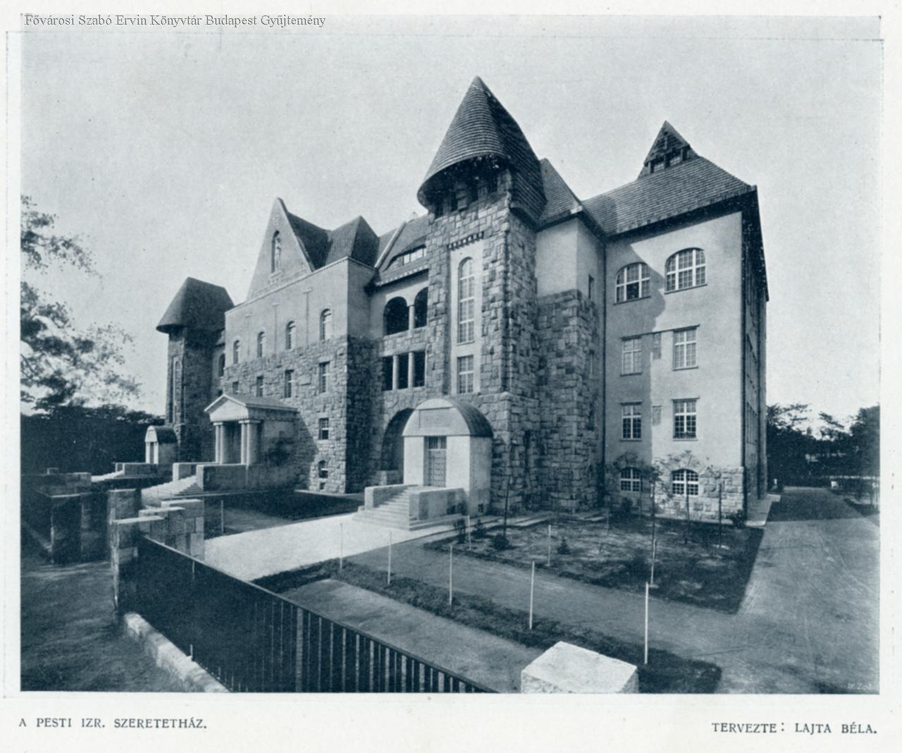 His second public building was the hospice on Amerikai Road, the home for the terminally ill operated by Chevra Kadisha (1908–1911). The facade of the building is monumental and at the same time, in the words of Artúr Bárdos "still intimate, as a small garden house, which we visit to rest."
