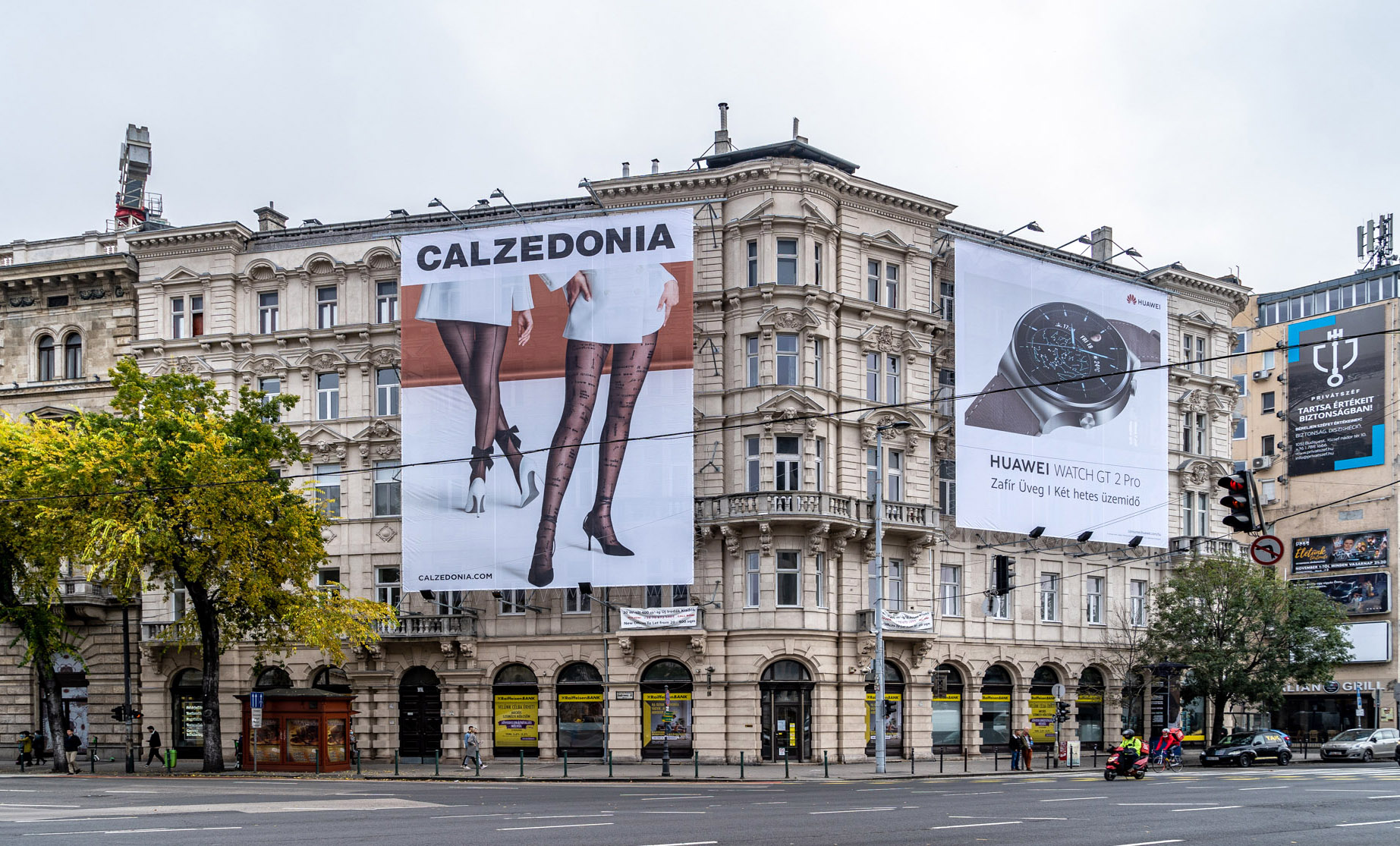 The Stein Palace today. Huge posters, no roof decorations (Photo: Balázs Both/pestbuda.hu)