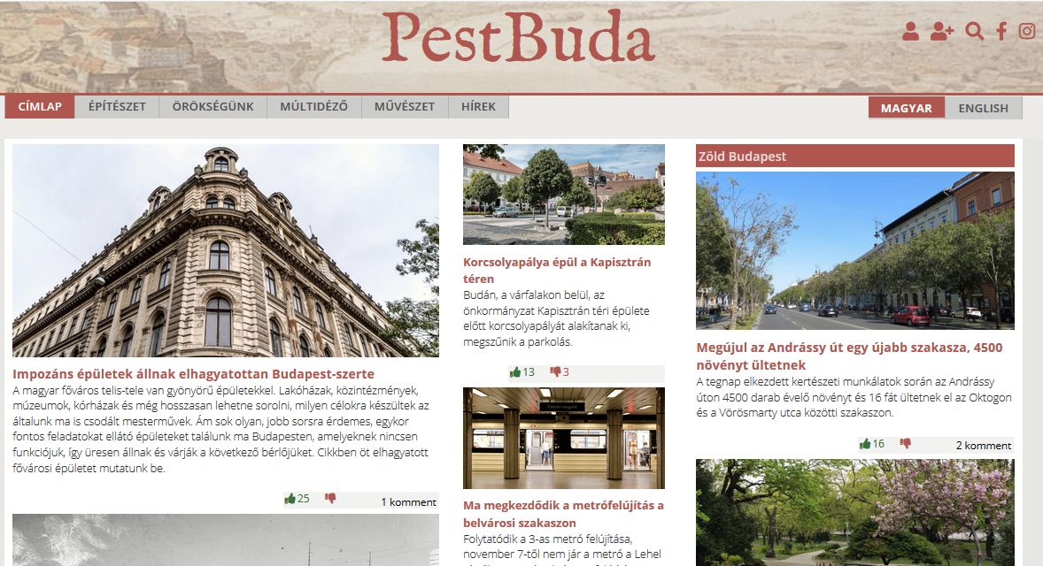 Founded in 2016, PestBuda magazine published high-quality articles about the unique architectural and natural heritage of Budapest, its cultural traditions and the life of residents in the past and today. The new English edition can be accessed at pestbuda.hu/en or by using the language selection feature on any page.