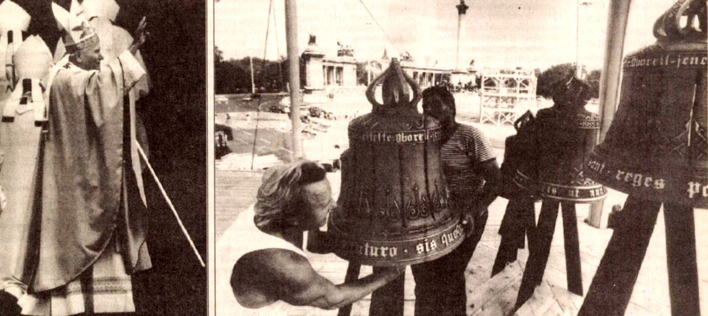 Preparations for the Papal Mass on Heroes Square (right) and the Pope (left) (Source: Pesti Hírlap, 16 August 1991)