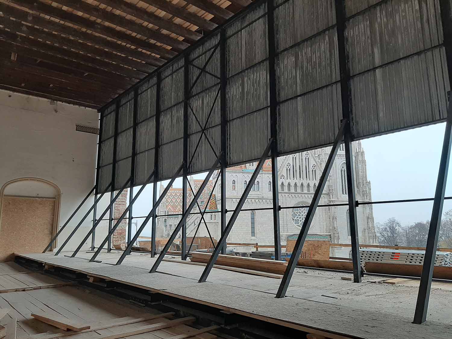 View from the ceremonial hall of the palace of the Ministry of Finance currently under reconstruction towards Szentháromság Square and Matthias Church (Photo: ter6.hu)