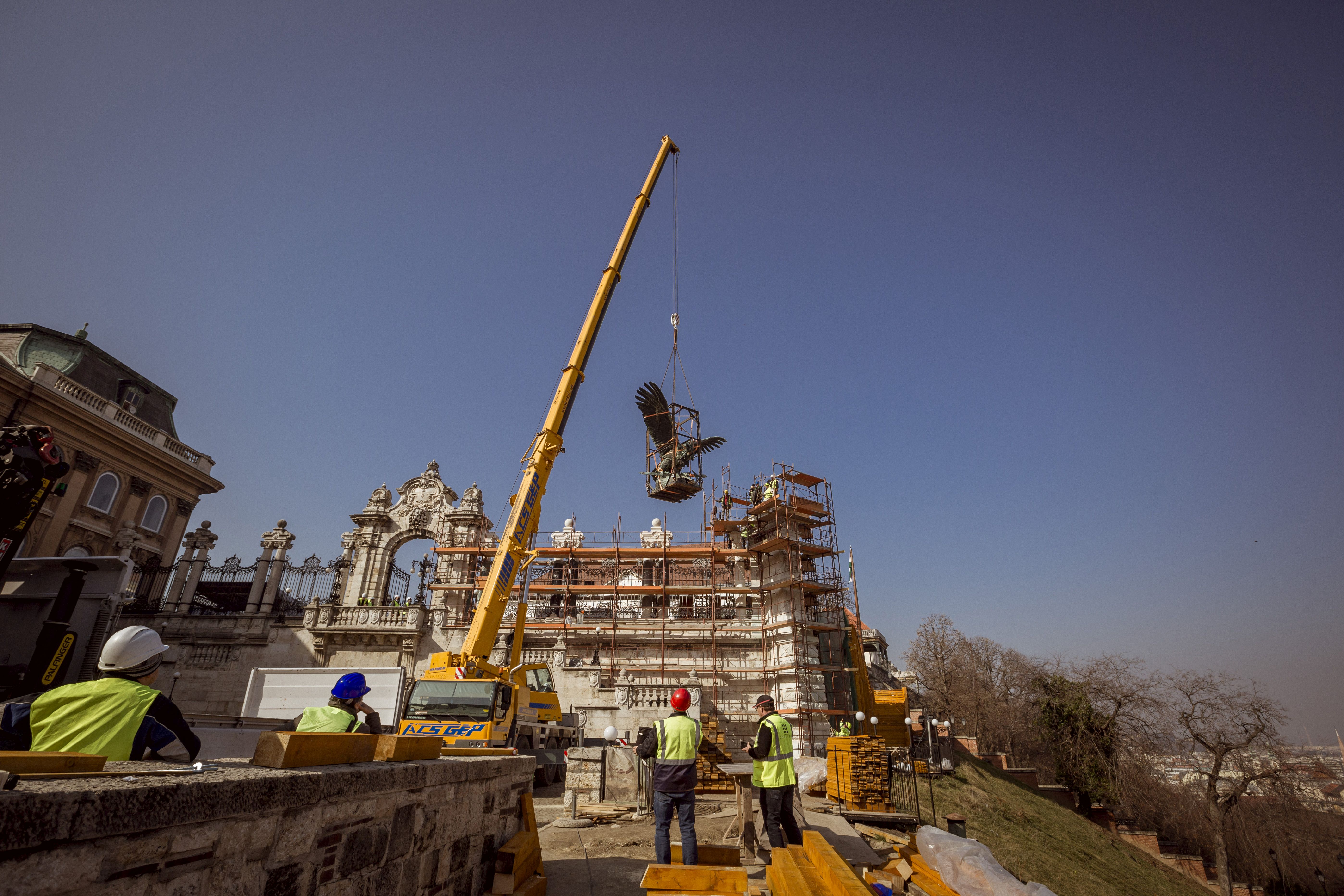 Várkapitány Zrt. announced to the MTI that the turul statue has been lifted from its pedestal in Buda Castle. The neglected statue will be restored in a temporary restoration workshop created on the Savoyai Terrace. Visitors to the castle will be able to follow the work.