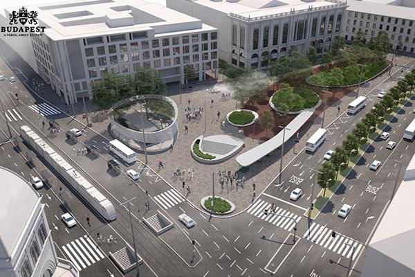 However, the building of the oval pavilion, which was still in the plans in 2019, will be implemented in a simpler form, the construction of the roof over the Rákóczi Road bus stops will be delayed and the underpass will be renovated but not expanded. The planned tree line on Rákóczi Road will not be planted. Valuable specimens of ash on the square will be protected.
