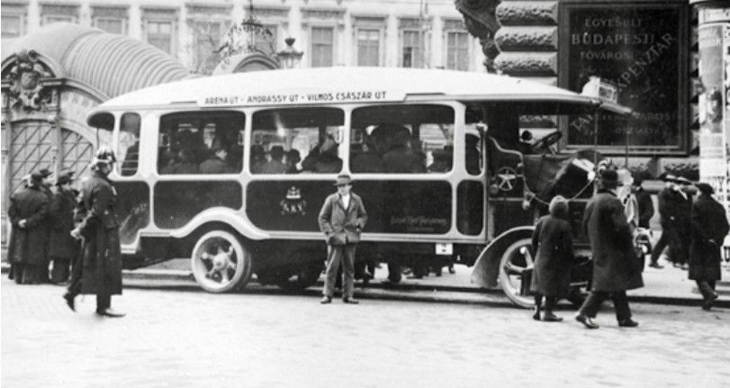 The first buses in Budapest started in 1915. The first two buses were soon followed by two more, and the new mode of transport became increasingly popular in the capital. However, the buses could not run for long periods of time, as vehicles were stopped due to a shortage of petrol and tires caused by World War I.