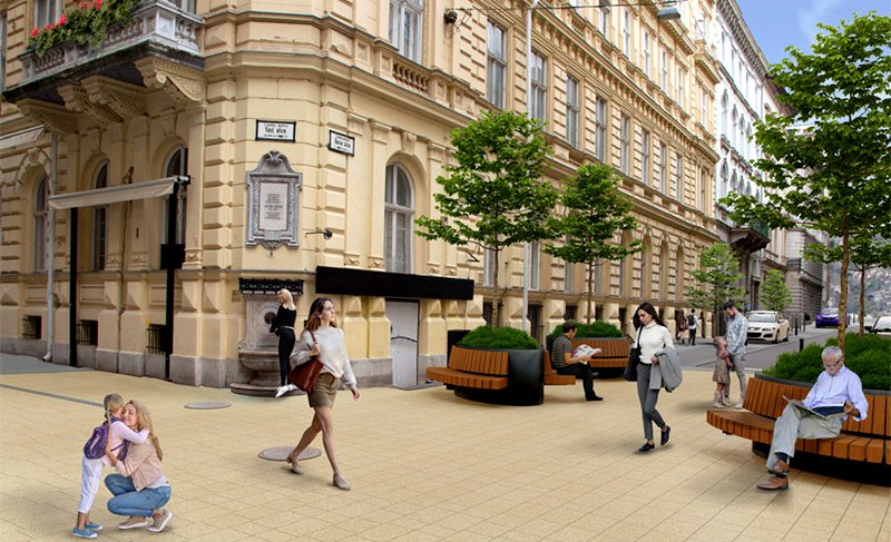 The article also reveals that 12 leafy trees will be planted in Váci Street in the south, and mini urban oases will be created in the small spaces at the mouths of the connecting streets with 16 trees and perennials planted in planters. The Lajtha well will be renovated and put into operation, and several benches and bike racks will be installed.