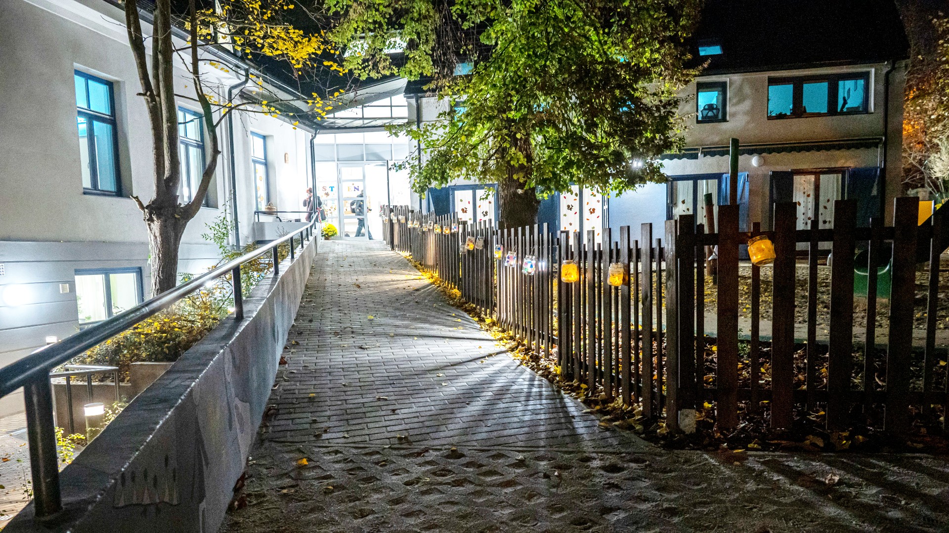 The building complex previously had an asbestos-containing slate roof, which was demolished and a new roof sheathing was made. In place of the old doors and windows, thermally insulated doors and windows were installed, and all rooms were renovated. The kitchen was also modernised and a new food elevator was installed. The day care centre for the elderly is located on the ground floor.