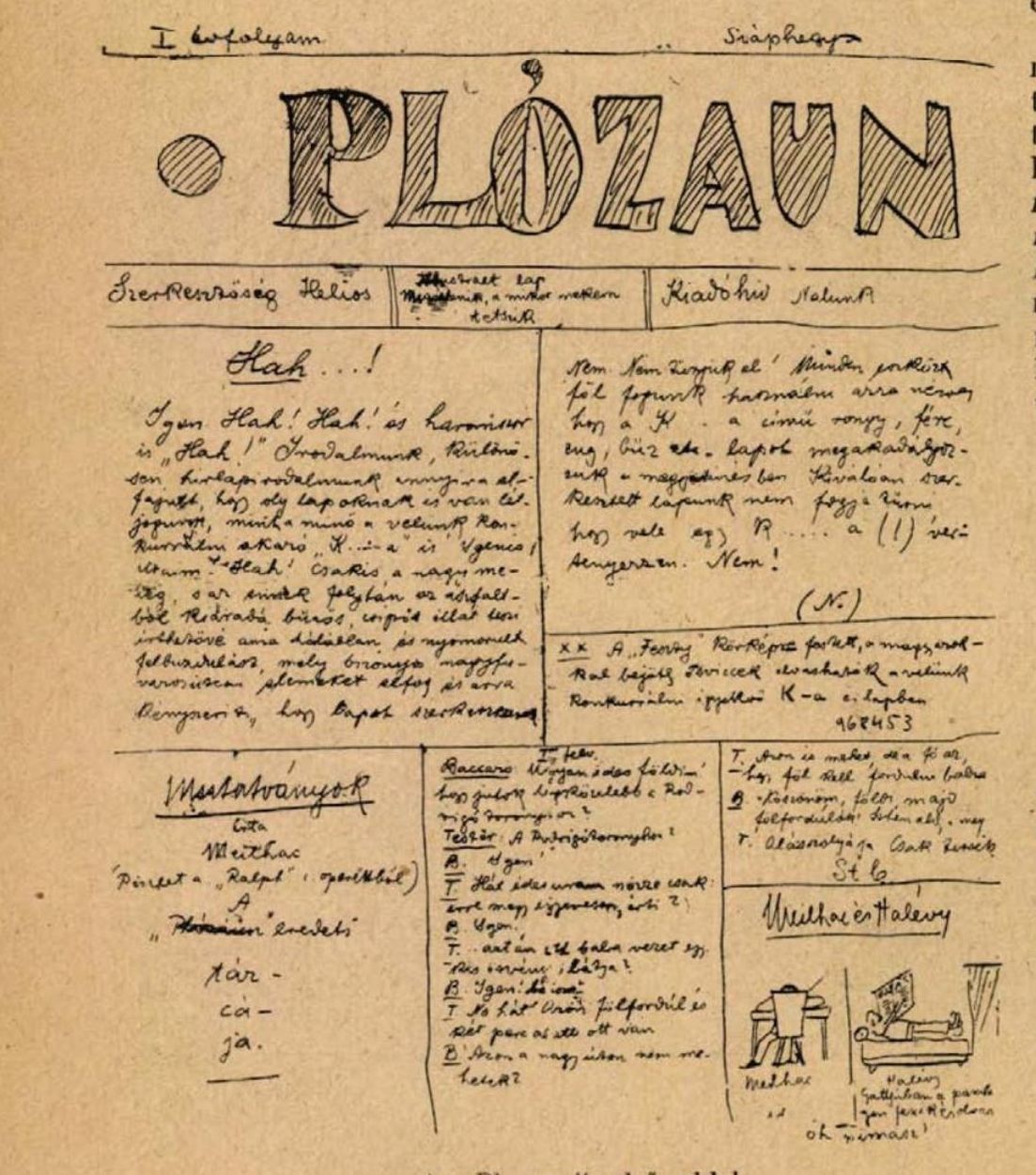 The front page of the comic strip Plózaun, written, drawn and reproduced by 8th grader Ferenc Neumann (Source: Színházi Élet, Issue 17, 1927)