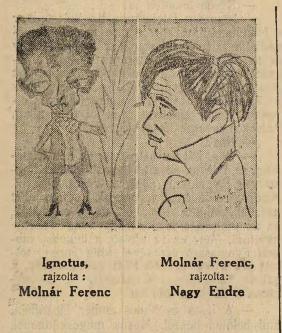 Ferenc Molnár's caricature of Ignotus and Endre Nagy's drawing of Ferenc Molnár (Source: Világ, Issue 2, 1914)