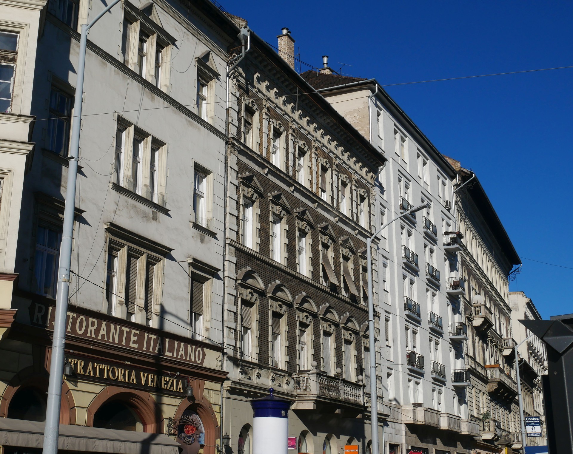 The family's apartment was behind the first-floor windows overlooking the Outer Ring Road and the building's only ornate balcony. From the balcony, there was a good view of József and Ferenc Boulevards, as well as the huge barracks at the intersection of Üllői Road and the Gschwindt yeast and spirit factory opposite it (the barracks building is still there, the Corvin Cinema and the houses surrounding it).